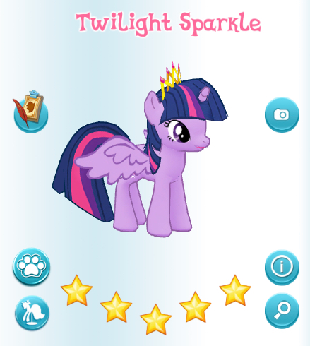 Twilight Sparkle is the main character of the TV series My Little Pony: Friendship is Magic and the game My Little Pony: Magic Princess.