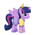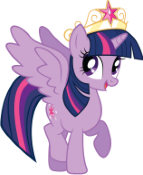 She is a unicorn pony and Princess Celestia's personal student and is one of the Mane Six, representing the element of magic  Magic Shard. Her harmony stone is the last to be activated in the Ponyville quest progression, requiring 150  Magic Shard Magic Shards to activate, after which the first main story line is completed, Nightmare Moon is defeated, and Princess Luna is added to the player's inventory. She transforms into an Alicorn after the "Returning to Harmony" Canterlot and is coronated as a princess in the quest "Princess Twilight" Canterlot.