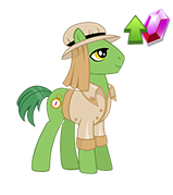 Adventurey Cantertine Pony is an Earth pony stallion added in Update 8.3. He is a helper in siege stage 7 of the Adventures in Rockology event. He and Buried Treasure are the first Gem-producing Pony in the game.