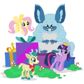 Applejack: EASY, now! Why don't we pull a Hearth's Warmin' Helper? We'll put our names in a hat and pick one at random. Just buy a present for the pony ya picked! One present for one pony!