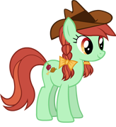 Candy Apples is a country lovin' cowpony who loves nothing more than getting her green hooves on her favorite sweet and sticky treat.