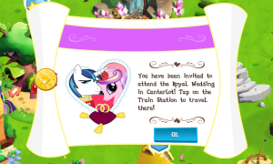 Canterlot is a region that was added to My Little Pony in the Canterlot Wedding update on April 15, 2013. It is unlocked once the player has reached level 20. Travel between Canterlot and Ponyville is achieved by tapping the Train Station at the top of the map.