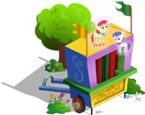 Claude's Puppet Show is the traveling stage Claude the Puppeteer uses as his house in Ponyville. It was built by Rarity but Claude didn't show much gratitude.