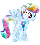 Crystal Rainbow Dash is a variation of Rainbow Dash who lives in Crystal Hotel. She is a helper in stage 7 of the "Crystal Ghost Chaos!" LTS.