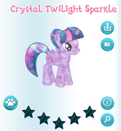 Crystal Twilight Sparkle is a Crystal pony variant of Twilight Sparkle added in Update 8.6. She can be obtained by completing the What's Hot Collection during the "Crystal Ghost Chaos!" event.