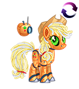 Cyber Applejack is one of several characters in the game with an ability/mechanism that allows the player to transform them into their alternate appearance(s), if the player has also purchased their alternate appearances from the Collection or Shop. In this case, Cyber Applejack can be transformed into Supercharged Applejack.
