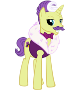 Dandy Grandeur is a Unicorn stallion who lives in Canterlot. He is a community helper in the Nightmare Night at the Museum event.