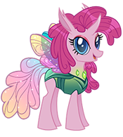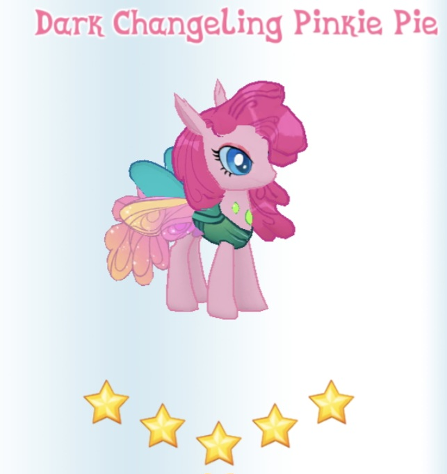 Dark Changeling Pinkie Pie is a variant of Pinkie Pie. She was added in Patch 7.2.0, and both variants are helpers in boss stages 7 and 8 of the Changeling History quest.