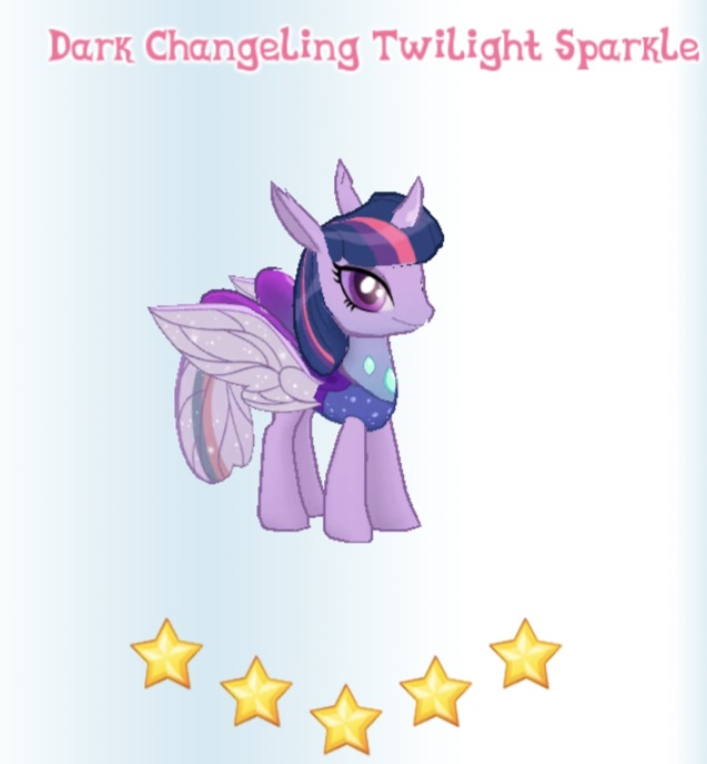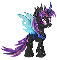 Dark Changeling Twilight Sparkle is a variant of Twilight Sparkle. She was added in Patch 7.2.0, and both variants are helpers in boss stage 4 of the Changeling History quest.