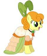 Demure Pony is an Earth pony mare who lives in Mane Manor. She is also resemble as Golden Harvest.