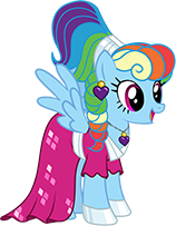 Fancy Rainbow Dash is a variant of Rainbow Dash available in the 13th anniversary Seasonal Shop.