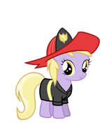 "Fire Chief" is the in-game name for "Dinky Doo", who appears in the episode "Luna Eclipsed" dressed in the firefighter outfit. She lives in Canterlot Manor with Sassaflash, and was purchasable for 45,000