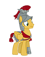 A legendary Royal Legionnaire, lauded to this day for his bravery. When in Cloudsdale, do as the Cloudsdalians do!