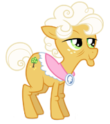 Goldie Delicious is a Granny Smith's cousin living in The Delicious Homestead in Sweet Apple Acres. She was added in the Everfree Forest update. She can appear as Social event reward. Also she, along with Cheese Sandwich and Caramel Apple, appeared as a time-limited offer for the Earth Day on April 22, 2015.