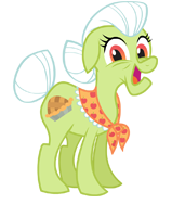Granny Smith is Big McIntosh's, Applejack's, and Apple Bloom's grandmother. She was added in the Sweet Apple Acres update. Like the princesses, she starts out with 5 stars and thus cannot play minigames except the Minecart minigame due to old age.
