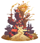 Much of the town appears to be empty, as the buildings are sparse and scattered, and with trees, broken ships, and puddles of purple fluid from octopus tentacles littered everywhere. Like in the Changeling Kingdom, the player unlocks and uncovers several wards of the town after completing quests.