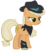 Mean Applejack lives in Ponyville. She was added in quick update 4.5. She is a helper in Milestone #2 of Friendship Day.