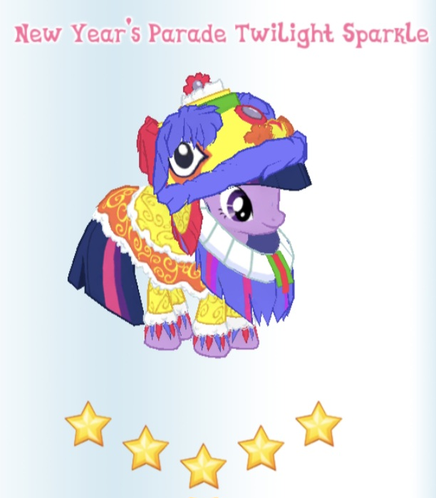 New Year's Parade Twilight Sparkle a holiday variation of Twilight Sparkle added in Update 8.1. She is a helper in siege stage 4 of the A Mistmane New Year event.
