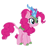 Nirik Pinkie Pie is a Kirin version of Pinkie Pie. Both versions are helpers in siege stage 6 of the Rin Rage event.