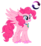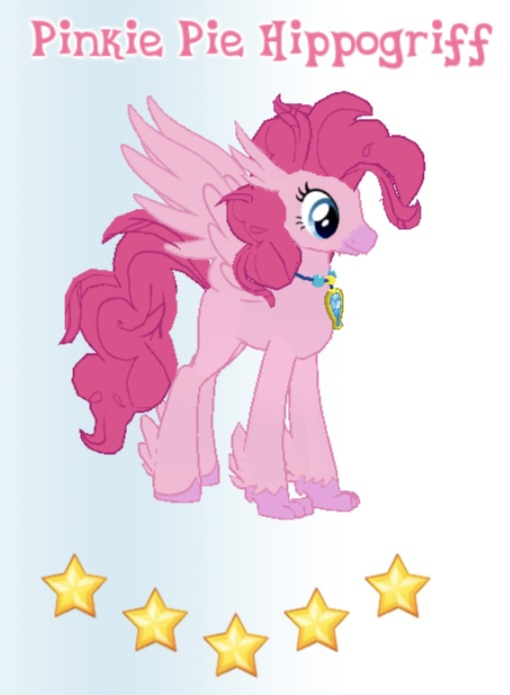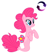 Pinkie Pie Hippogriff is a Hippogriff version of Pinkie Pie. Both versions are helpers in siege stage 2 of the Seaquestria Couture event.