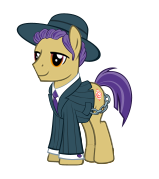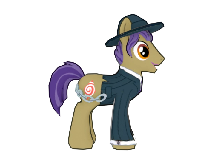 Pinstriped Gangster Pony is an Earth pony stallion added in Update 5.6. He is a community helper in the High Plains Ponies Limited-Time Siege.