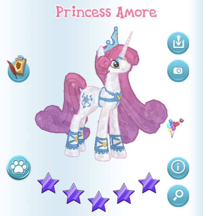 Princess Amore is a character who lives at the Crystal Castle in the Crystal Empire. She first appeared in the IDW comics' My Little Pony: Friendship is Magic issue #1. She is the former ruler of the Crystal Empire. She is the final prize of Siege of the Crystal Empire limited time story.