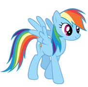 Rainbow Dash is a member of the mane 6 and who represents the Element of Loyalty. She lives in her Cloudominium in Ponyville with her parents Bow Hothoof and Windy Whistles. She is voiced by Ashleigh Ball.