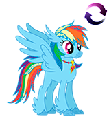 Rainbow Dash Hippogriff is a Hippogriff version of Rainbow Dash. Both versions are helpers in siege stage 2 of the Seaquestria Couture event.