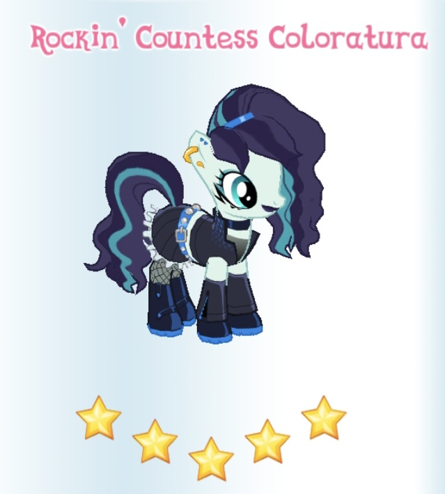 Rockin' Countess Coloratura is a clone of Countess Coloratura added in Update 10.4. She lives in Music Festival in Ponyville.