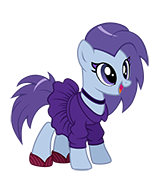 This purple-loving fashionista works rather enthusiastically for Manehattan's convention hall.
