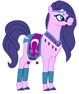 Saddle Arabian Mareis an earth mare that lives in Canterlot. She is occasionally put on sale in the Canterlot store for gems. She has a dark purple mane, a light purple body and wears a decorated saddle and bridle.