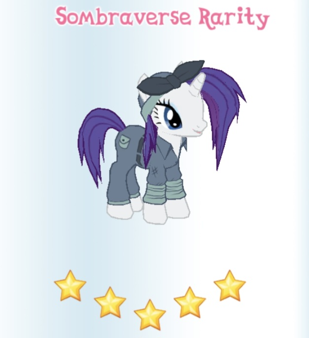 Sombraverse Rarity lives in Ponyville. She’s the reward for completing the 3rd stage in the Cutie Re-Mark: Sombraverse Redux.