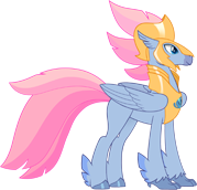 "With the pinkest of plumes and his bright golden armor, this hippogriff stallion's really a charmer!"