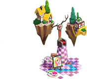 Throne of Chaos is a house in Ponyville. It consists of two floating islands, one with an upside-down house, and Discord's throne on the ground.