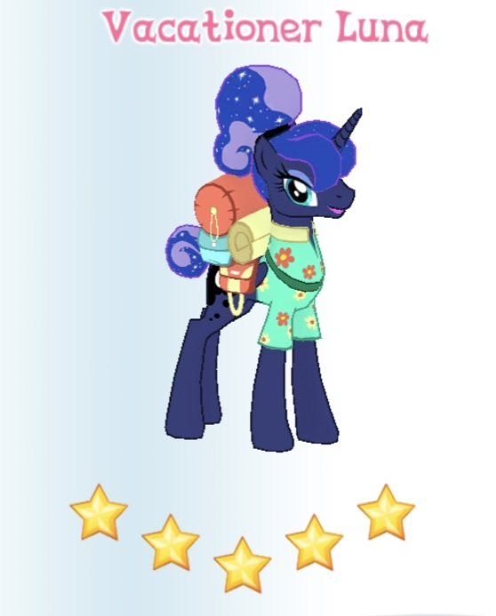 Vacationer Luna is a version of Princess Luna in Ponyville. She was released as a helper for the Zipline Blues event.