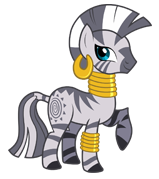 Zecora is a zebra who lives in the Everfree Forest. In the game, she lives in Zecora's Cottage in Ponyville.